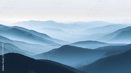 © virza, Fototapeta premium Serene Blue Mountainscape Under Misty Sky