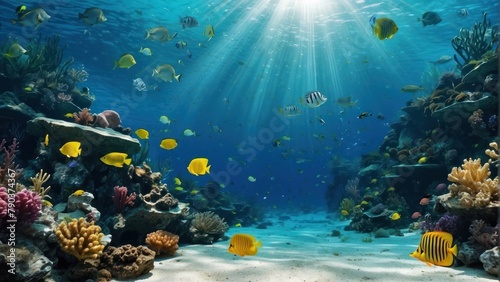 Naklejka premium Serene Blue Ocean and Sparkling Sunlight Scene