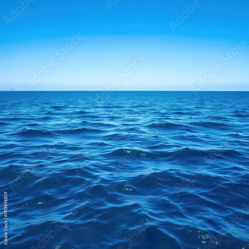 © Rainyphoto, Obraz premium Serene blue ocean panorama, gentle waves, tranquil sky, travel, nature