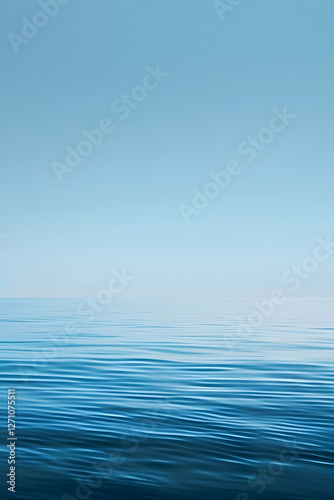 Naklejka premium Serene Blue Ocean Surface Under Clear Sky with Gentle Waves and Tranquil Atmosphere