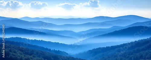 © Marwan, Fototapeta premium Serene Blue Ridge Mountains: A Misty, Panoramic Landscape