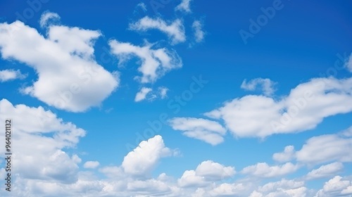 © evening_tao, Obraz premium Serene Blue Sky and Fluffy White Clouds