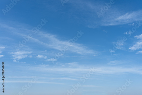 © Sloek Prey, Fototapeta premium Serene Blue Sky with Delicate Cirrus and Cumulus Cloudscape