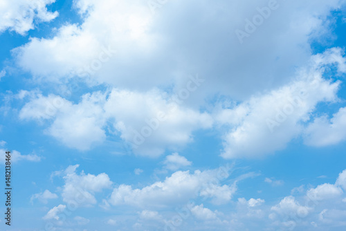 © Sloek Prey, Fototapeta premium Serene Blue Sky with Fluffy White Cumulus Clouds Peaceful Nature Background