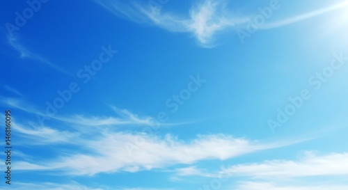 Obraz premium Serene Blue Sky with Wispy Cirrus Clouds: A Breathtaking High-Resolution...