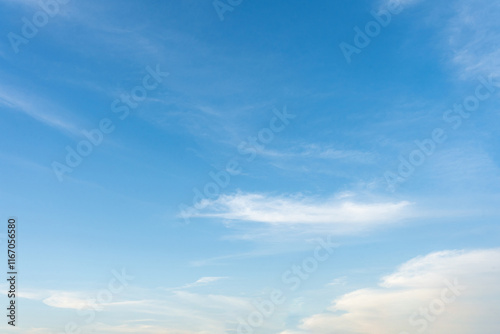 Fototapeta premium Serene Blue Sky with Wispy Clouds Nature Background