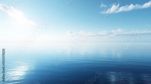 © CLOVER BACKGROUND, Fototapeta premium Serene Blue Water Background with Sunlight Reflection and Clouds
