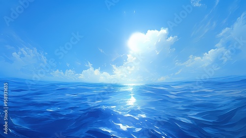 Obraz premium Serene Blue Water with Sun and Sky Reflections - Peaceful Water Ripples Background