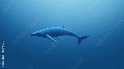Fototapeta premium Serene Blue Whale: A majestic blue whale glides effortlessly through the deep blue ocean, its silhouette a study in elegance and tranquility.