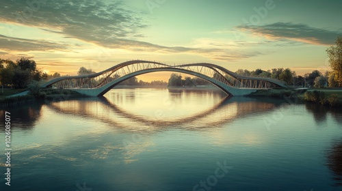 © somsri, Naklejka premium Serene Bridge Over Reflective Water at Dusk
