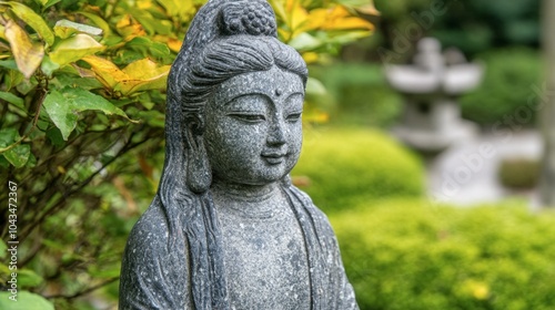 Fototapeta premium Serene Buddha Statue in Tranquil Garden Setting