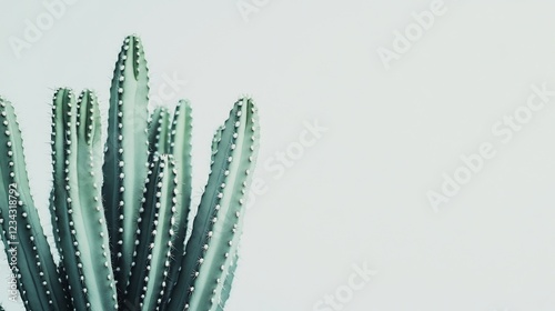 Naklejka premium Serene Cactus Minimalist Photography: A Study in Green and White