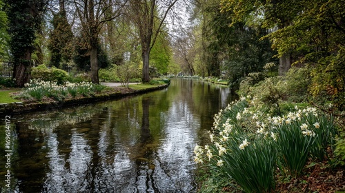 Fototapeta premium Serene canal through a spring garden