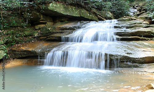 © Homestock Studio, Fototapeta premium Serene Cascading Waterfall in Lush Green Forest