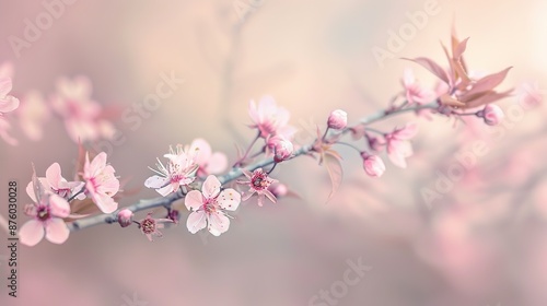 Fototapeta premium Serene Cherry Blossom Branches Close-Up with Copyspace Background