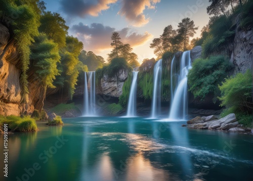 © ทองขาร พอใจ, Obraz premium Serene Ciseli Waterfall at dawn