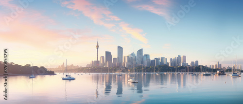 © evening_tao, Fototapeta premium Serene City Sunset by the Water