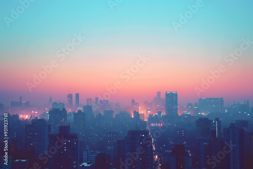 © Valentin, Fototapeta premium Serene Cityscape at Dusk with Vibrant Colors