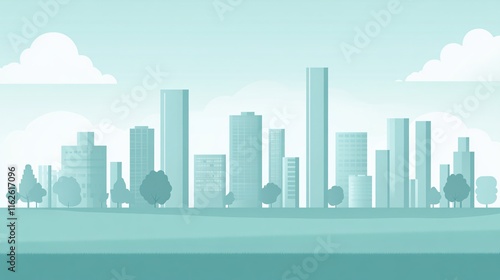 Obraz premium Serene Cityscape Skyline Illustration Pastel Green