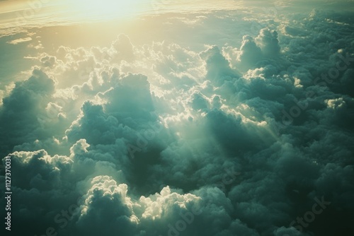© Nico, Fototapeta premium Serene Clouds With Bright Sunlight Streaming Through