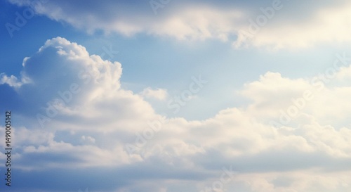 Fototapeta premium Serene Cloudscape: A Dreamy Blue Sky with Puffy White Clouds