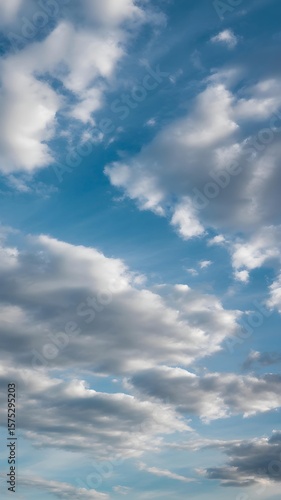 Obraz premium Serene cloudscape features fluffy, cumulus clouds floating in a beautiful...
