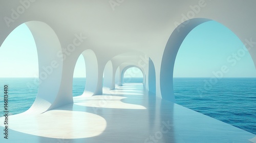 © @Luthfi, Fototapeta premium Serene Coastal Architecture: A Minimalist Seascape Vista