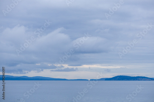 Fototapeta premium Serene Coastal Landscape with Overcast Sky on Vancouver Island, Canada