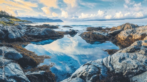 © nabila, Obraz premium Serene Coastal Reflection at Sunrise