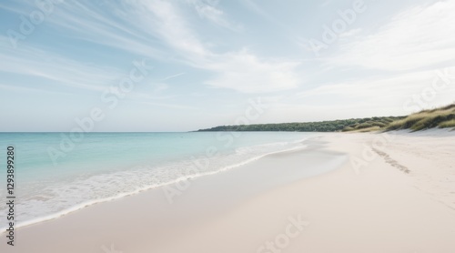 Obraz premium Serene Coastal Scene White Sand Beach and Turquoise Water Under a Partly...