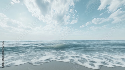 Fototapeta premium Serene Coastal Tranquility - Relaxing Ocean Waves and Sandy Beach Landscape...