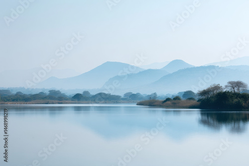 Naklejka premium serene coastal wetland in el salvador enveloped in mist and fog