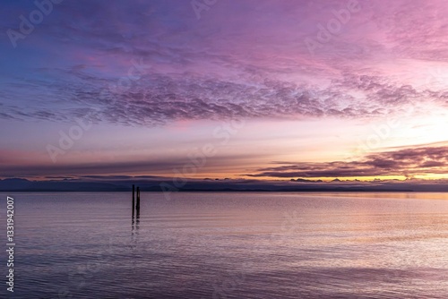 Fototapeta premium Serene coastline view captures the stunning colors of the sunrise at Oyster...