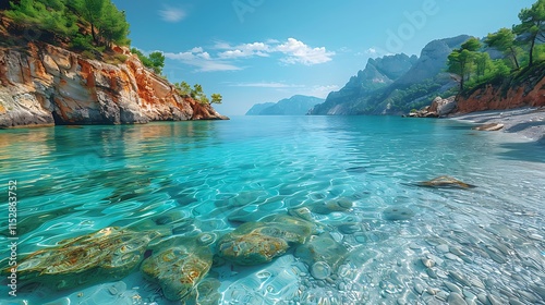 © MR BAT, Fototapeta premium Serene coastline with crystal-clear water