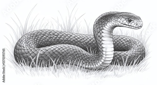 © Mirana, Fototapeta premium Serene Cobra in Grass: A Detailed Pencil Sketch