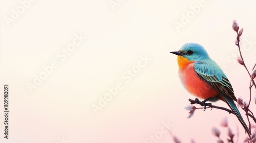 © cleo pick Art, Fototapeta premium Serene Colorful Bird on Blossom Branch at Dawn A Vibrant Springtime Scene