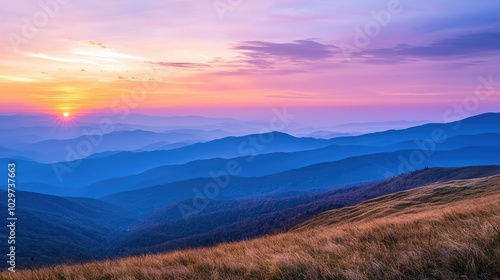 © Tuachan, Fototapeta premium Serene Copper Colored Mountains at Sunset