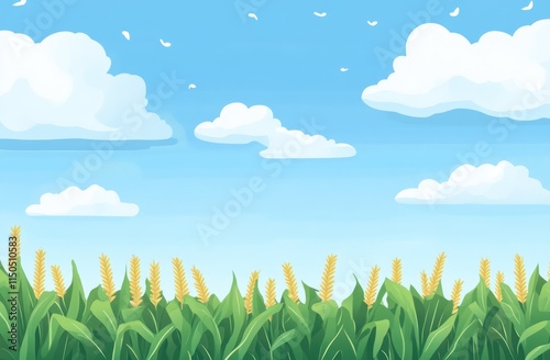 © LyceeChee, Obraz premium Serene Cornfield Under a Summer Sky