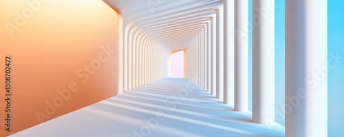 © PUKPIK, Naklejka premium Serene Corridor with Soft Lighting and Architectural Columns