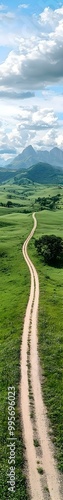 Obraz premium Serene Country Road, a tranquil path meanders through lush fields under a...