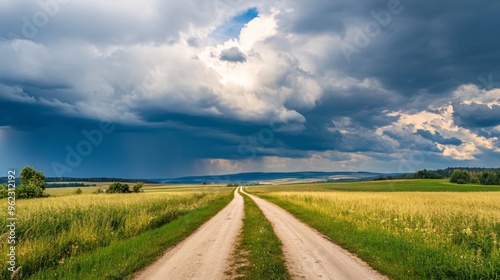 © Felix, Fototapeta premium Serene Country Road Under a Dramatic Sky