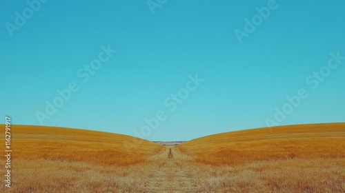 Fototapeta premium Serene Countryside Harvesting Scene with Symmetrical Layout