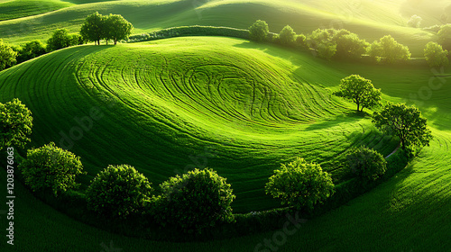 Fototapeta premium serene countryside landscape featuring lush green hills and trees, evoking...