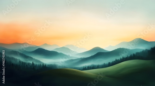 © kobkul, Obraz premium Serene countryside panorama with rolling hills and meadows