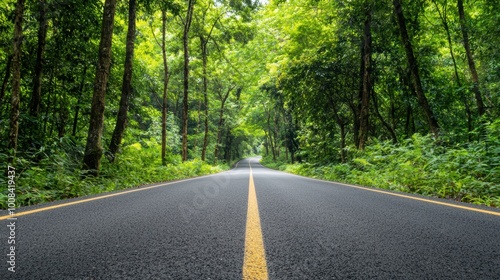 © sknab, Fototapeta premium Serene Curved Asphalt Road with Double Yellow Lines on Transparent Background for Highway Isolation Concept