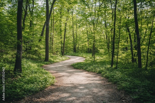 Fototapeta premium Serene Curving Path Through Lush Green Forest Landscape