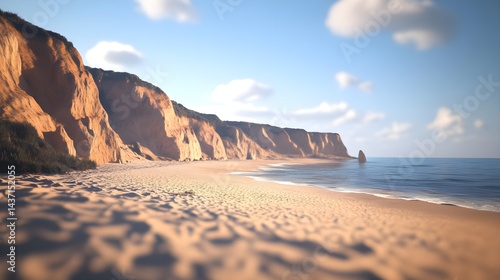 © Neungruedee, Naklejka premium Serene 3D Beach Landscape with Cliffs and Calm Waters in 8K Detail