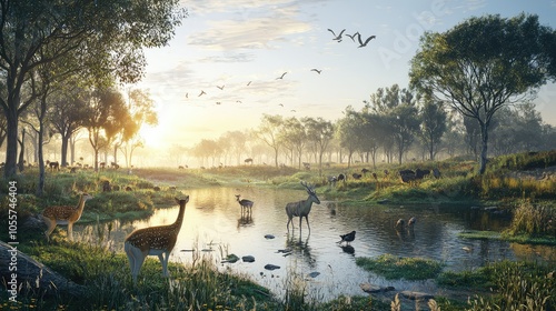Fototapeta premium Serene 3D Wildlife Scene in a Protected Environment