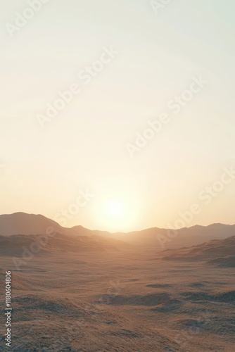 Fototapeta premium Serene Desert Landscape at Sunset with Rolling Dunes and Distant Mountains