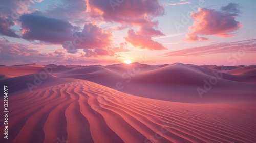 © Natthapong, Naklejka premium Serene Desert Landscape at Sunset with Textured Sand Dunes